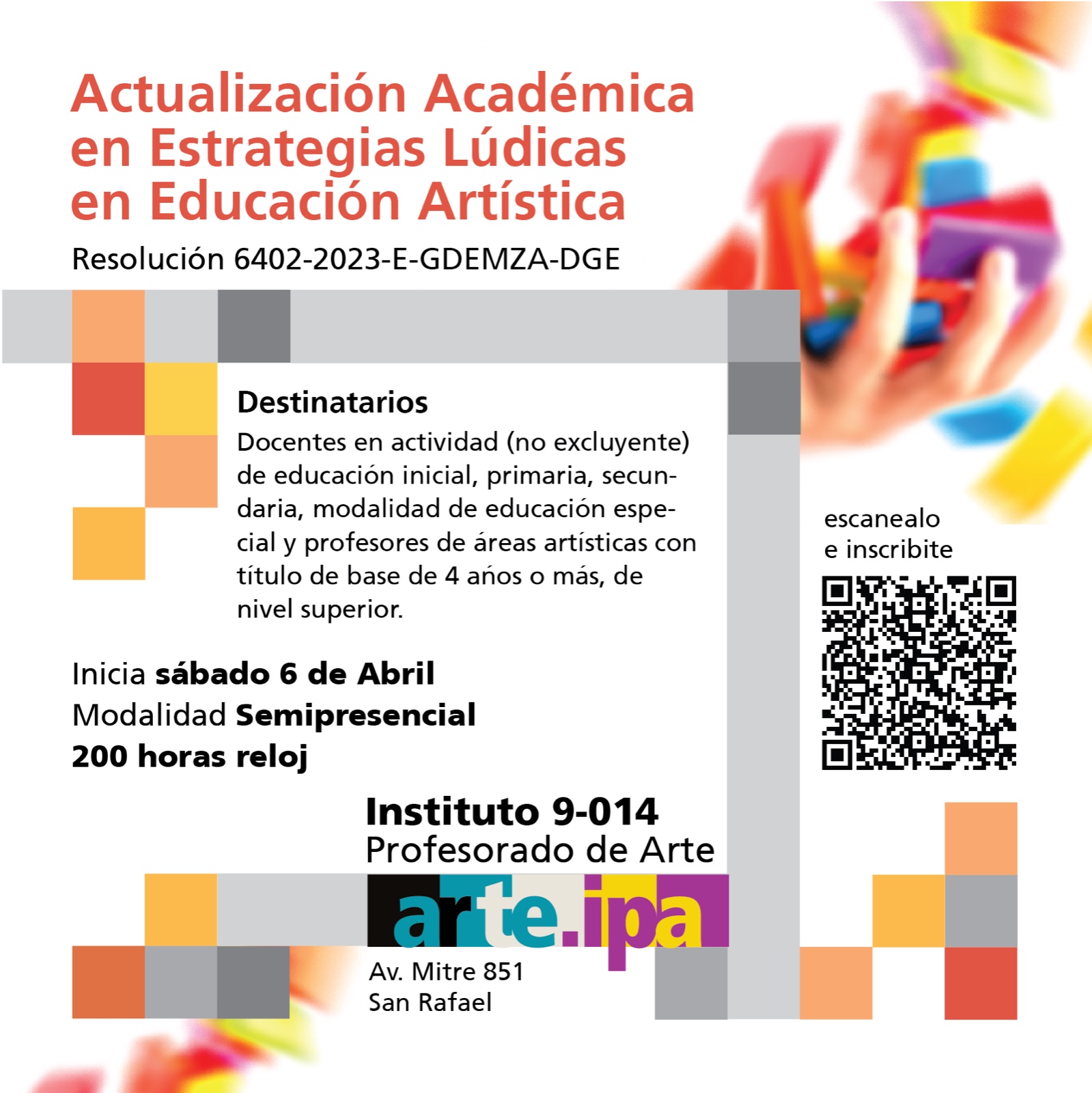La Actualización Académica en Estrategias lúdicas en Educación Artística, tiene como objetivo principal mejorar las trayectorias educativas de los alumnos y enriquecer las prácticas educativas mediante el uso de estas estrategias en el Área Artística.